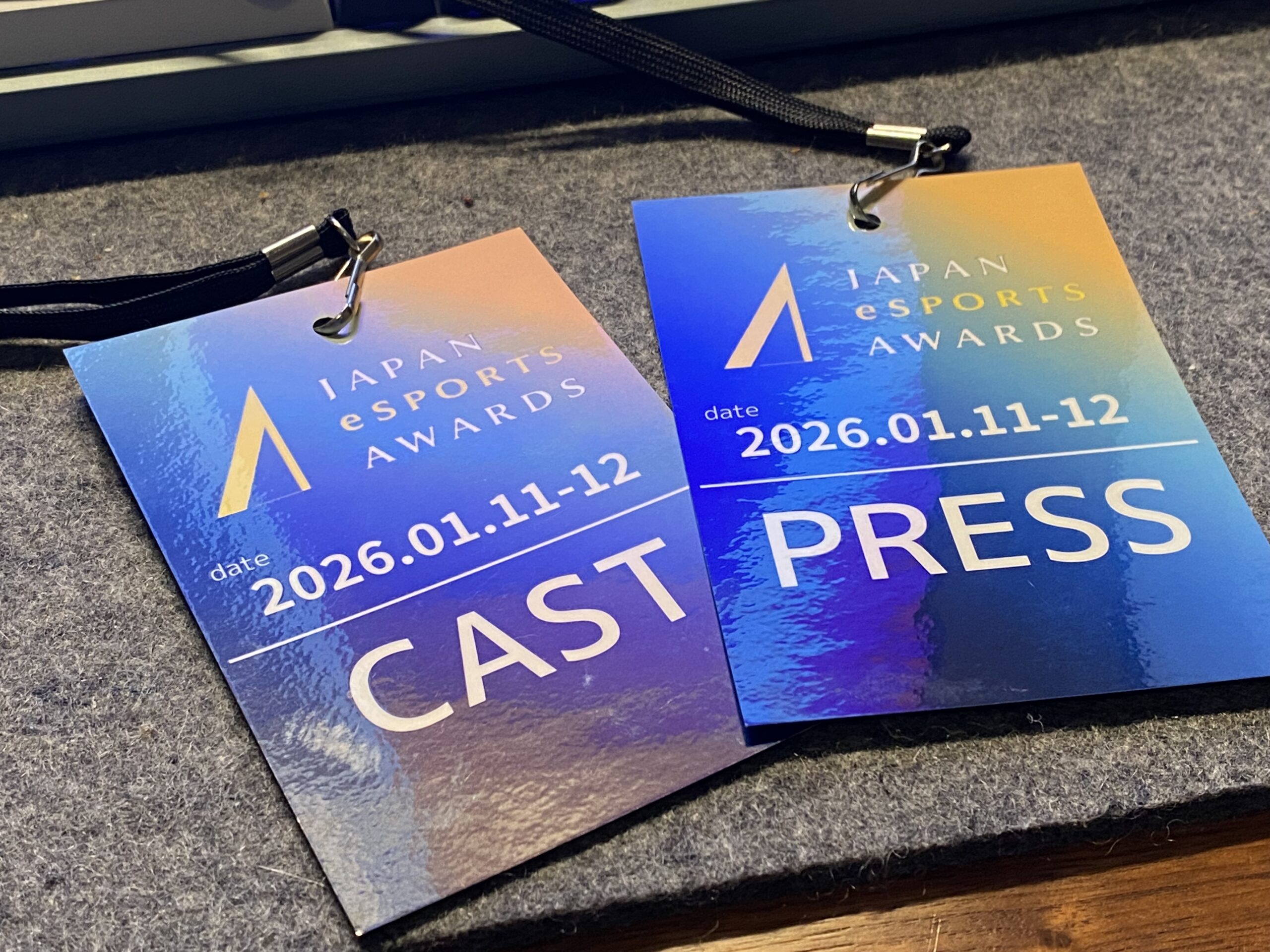 ▲取材用とキャスト用でパスが違うので、2枚のパスをぶら下げながら取材に。レアな体験