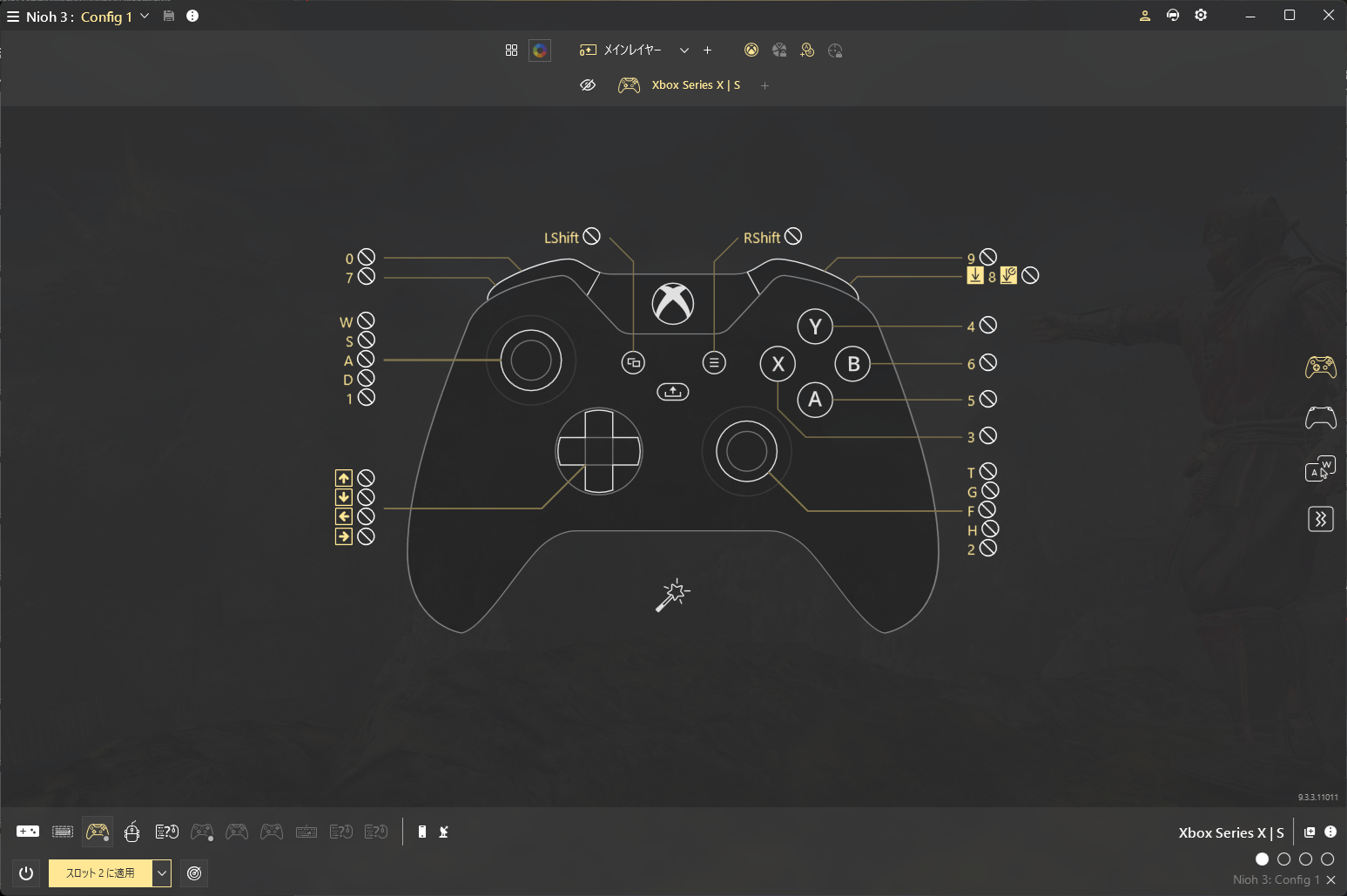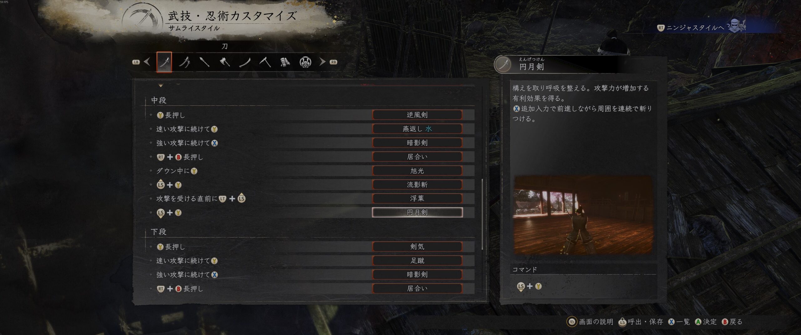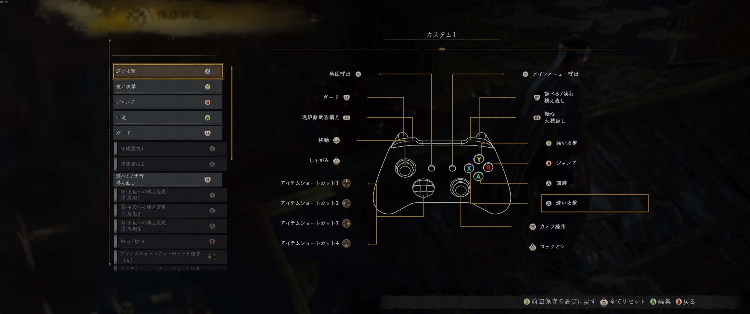 もう今の操作方法に慣れてしまっている上、操作法は過去作と同じだけど、構えなどの絡みで必ずしも同じ操作になるわけではないのでむしろ混乱することが判明。ひらめいた時はワクワクが止まらなかったけど実際やってみたら、忍術や守護霊技などの割り当てに苦しめられ、しっくりくるバインドができなかった。